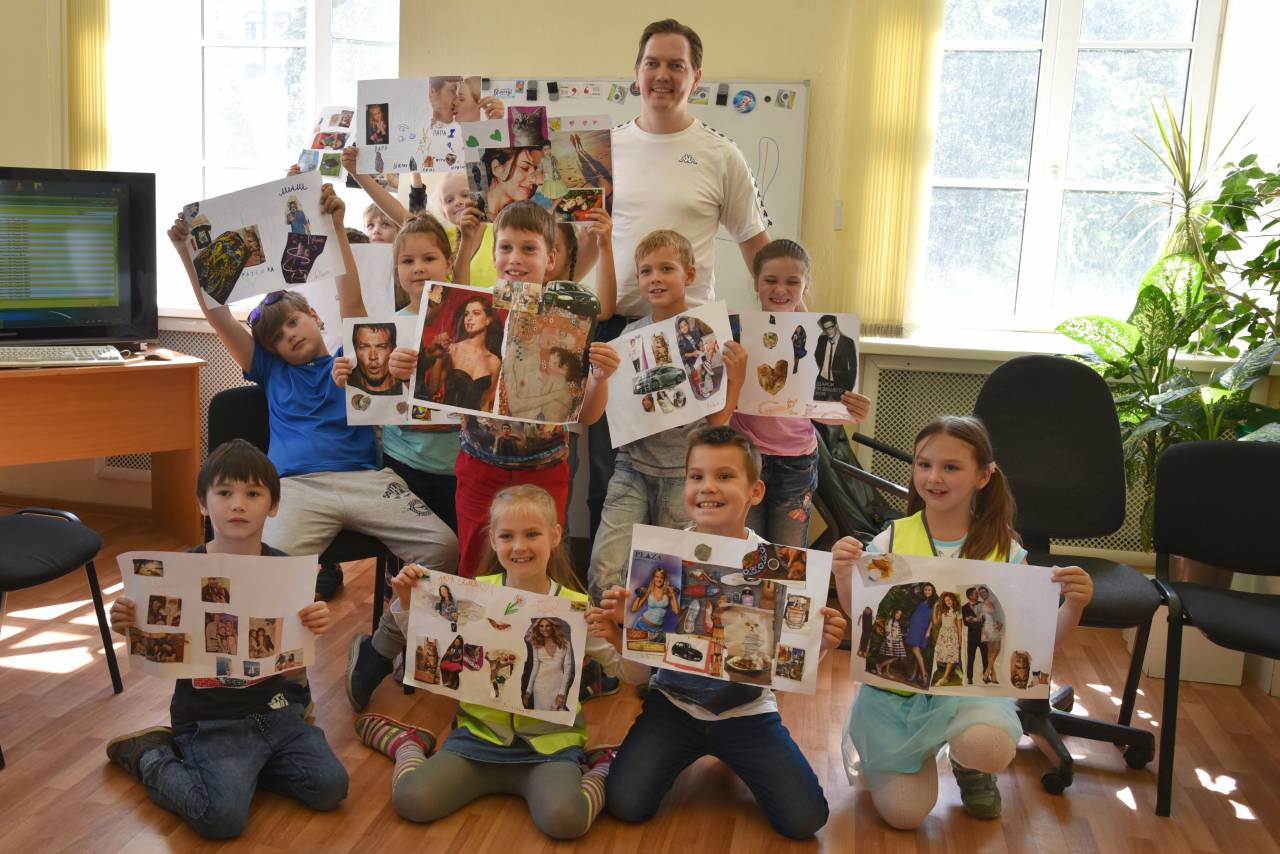 В начале встречи было знакомство — каждый участник на первую букву своего имени придумывал прилагательное. Затем было предложено сделать собственный коллаж на тему «Моя семья». Ребята выбирали образы, характеризующие их представления о собственной семье, из журналов и создавали коллажи. В конце занятия было обсуждение творческих работ, где участники встречи рассказали, почему они выбрали те или иные образы, ответили чего не хватает в их коллаже и что можно было бы добавить.