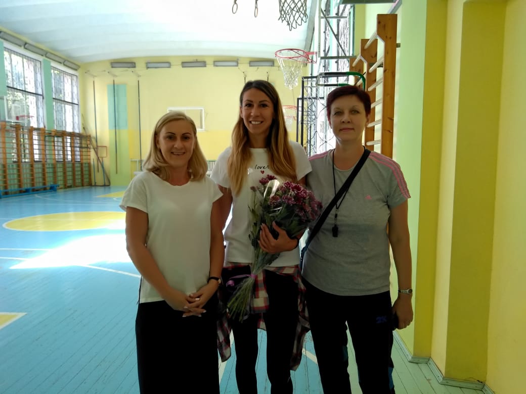 Ребятам несказанно повезло, ведь Евгения — чемпионка России, обладатель Кубка России, чемпионка Европы, чемпионка Евролиги, мастер спорта России международного класса. Она не только рассказала ребятам свою историю прихода в большой спорт, но и провела мастер – класс по баскетболу, научила бросать мячи в корзину.