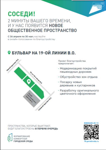 Голосуем за очередность благоустройства! Плакаты: Общая информаци Как проголосовать Бульвар на 19 линии Василеостровского района Skip back to main navigation