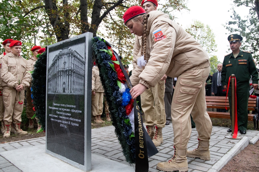 10 сентября 2018 года на Никольском кладбище Санкт-Петербурга была открыта памятная плита в честь первого начальника Интендантского курса генерала от инфантерии Николая Ивановича Соловьёва. В этом торжественном мероприятии участвовал отряд юнармейцев 15 школы.На церемонии также присутствовали начальник Военной академии материально-технического обеспечения (МТО) имени генерала армии А. В. Хрулева генерал-лейтенант Андрей Топоров, командование и научно-педагогический состав вуза, ветераны Вооруженных Сил. (подробнее с фото…)