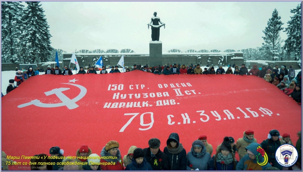 27 января в день 75-летия освобождения Ленинграда от вражеской блокады на Пискаревском мемориальном кладбище прошла торжественная акция «У подвига нет национальности». В ней приняли участие школьники из детских общественных объединений Петербурга, а также из других городов. Участвовали в этой акции и юнармейцы школы №15