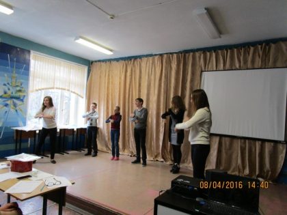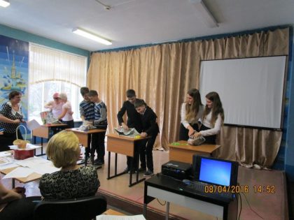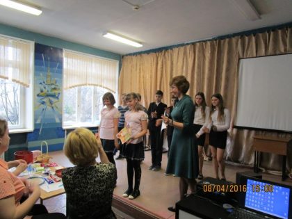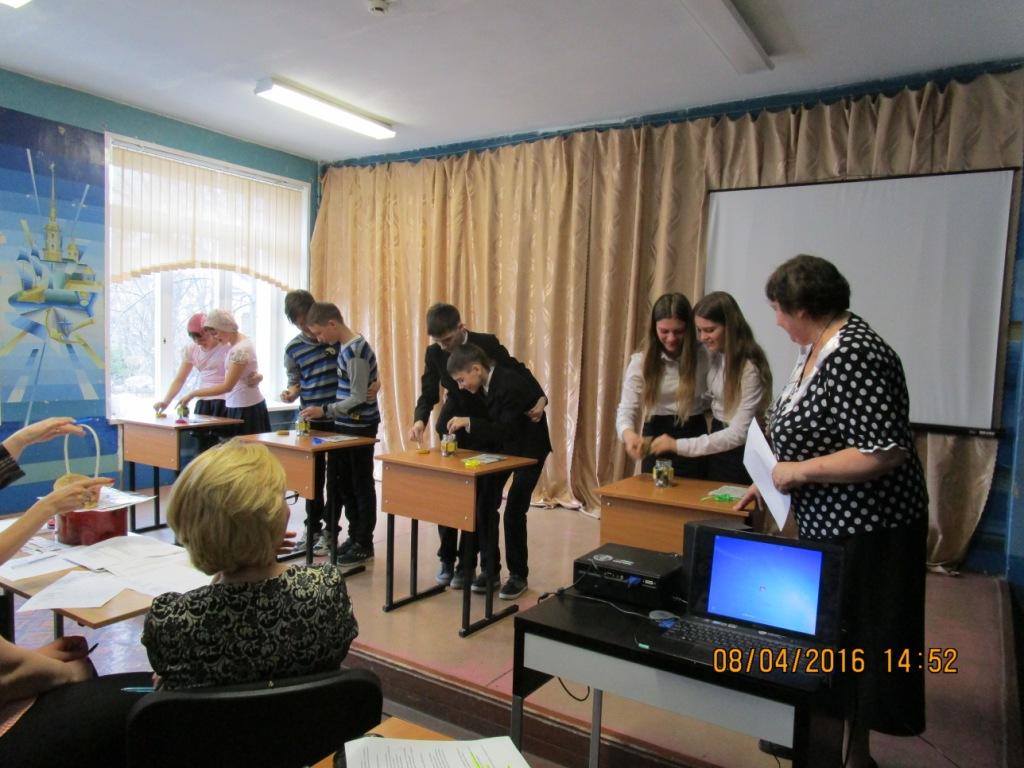 Далее действие развивалось по задуманному сценарию: «Литературный ринг» по сказкам известных отечественных и зарубежных писателей; «Пантомима» по известным пословицам; «Зашифрованное слово» с текстовыми подсказками и «Игра-состязание» на зрительную память, скорость и слаженность действий. Последнее задание было самым весёлым, поскольку разложенные на столах предметы нужно было сложить в ёмкость, которую оформить подарочным пакетом. Вся сложность была в том, чтобы сделать это лишь двумя руками из четырёх на каждую пару, а так хотелось воспользоваться всеми четырьмя! Зал охотно, громко и весело «болел» за своих одноклассников.