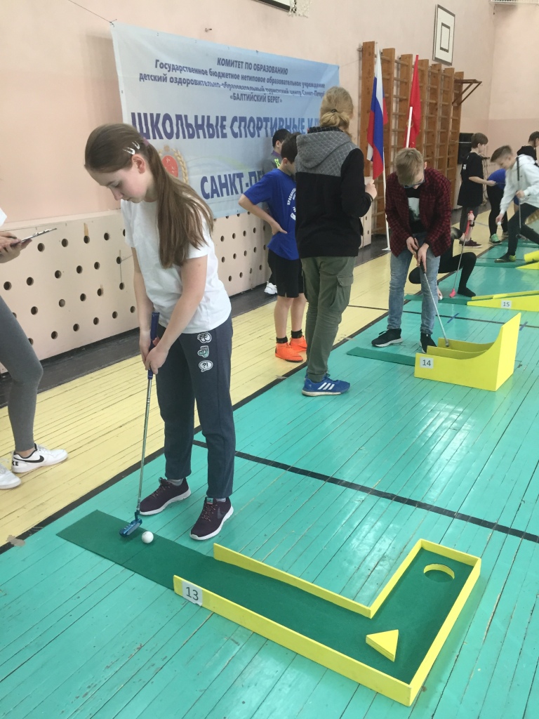 13 марта 2019 года обучающиеся приняли участие в соревнованиях по мини-гольфу Спартакиады среди обучающихся общеобразовательных организаций, подведомственных Комитету по образованию и администрациям районов Санкт-Петербурга, 2018/2019 учебного года, посвященной Столетию государственной системы дополнительного образования в России.