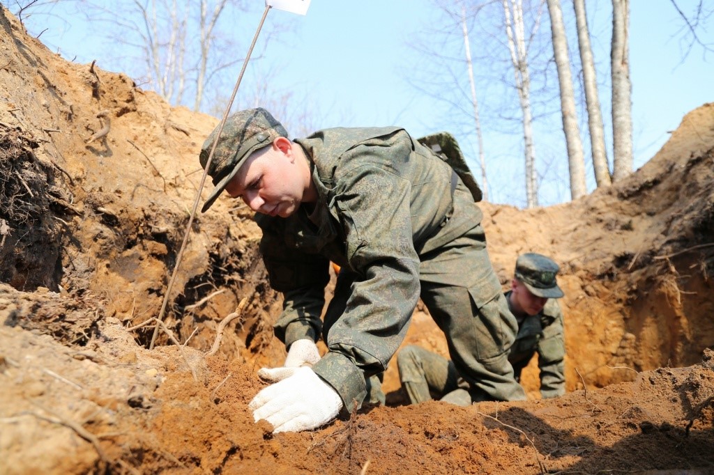 Отряд Юнармии школы №15 Василеостровского района Санкт-Петербурга вместе со своими шефами – офицерами и военнослужащими Военной академии материально-технического обеспечения им. генерала армии А.В. Хрулёва посетили место расположения бывшего немецкого концлагеря в Ленинградской области и приняли участие в поиске 35 военнопленных Красной Армии, погибших от нечеловеческих условий содержания.
