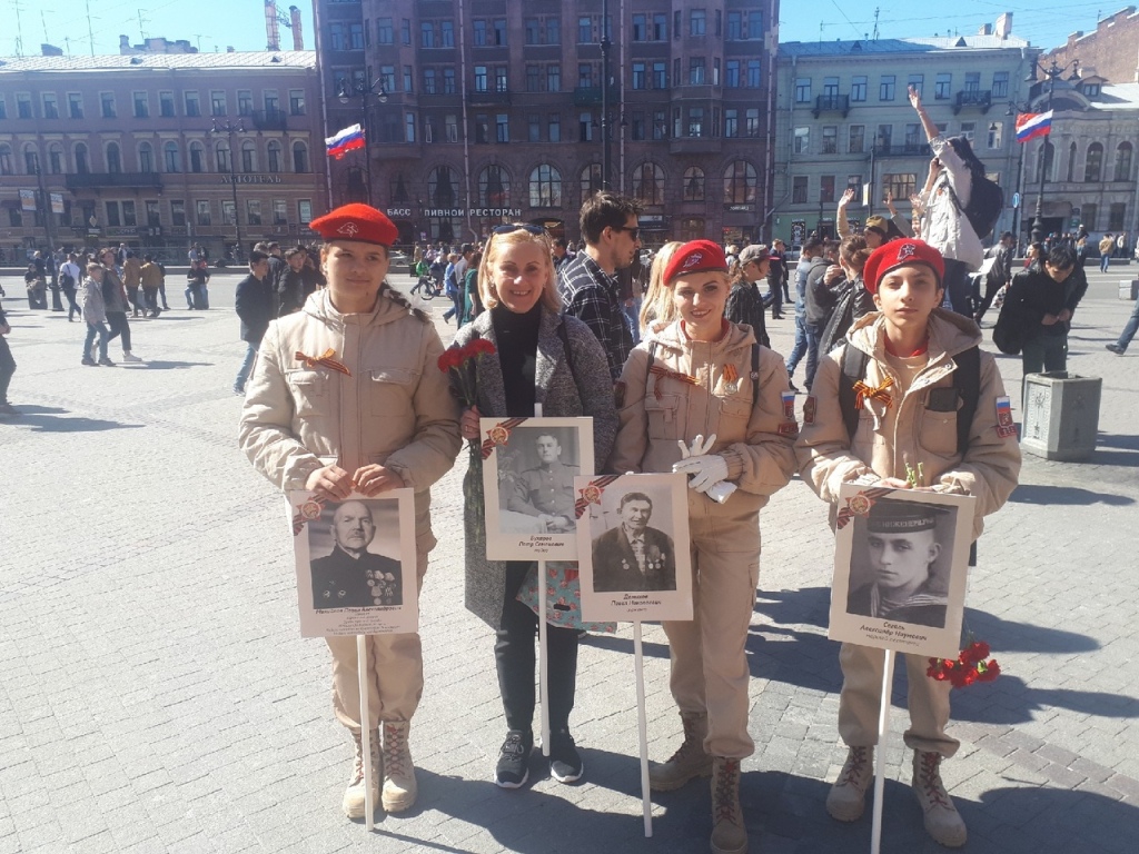 Участники пронесли по Невскому проспекту портреты своих близких — участников Великой Отечественной Войны, фронтовиков и тружеников тыла.