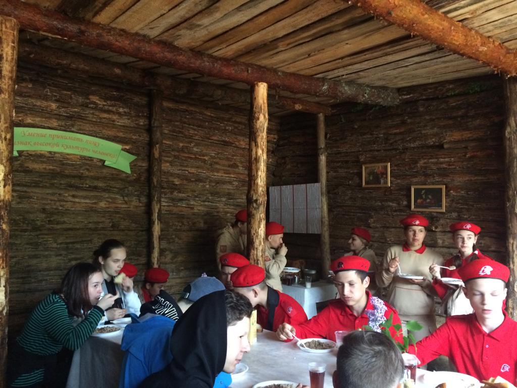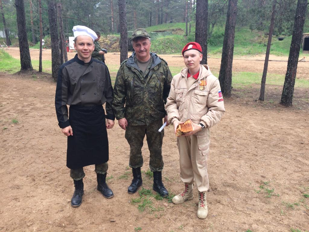 По завершению экскурсии Юнармейцев ждал горячий обед, приготовленный в полевых кухнях и свежевыпеченный хлеб.