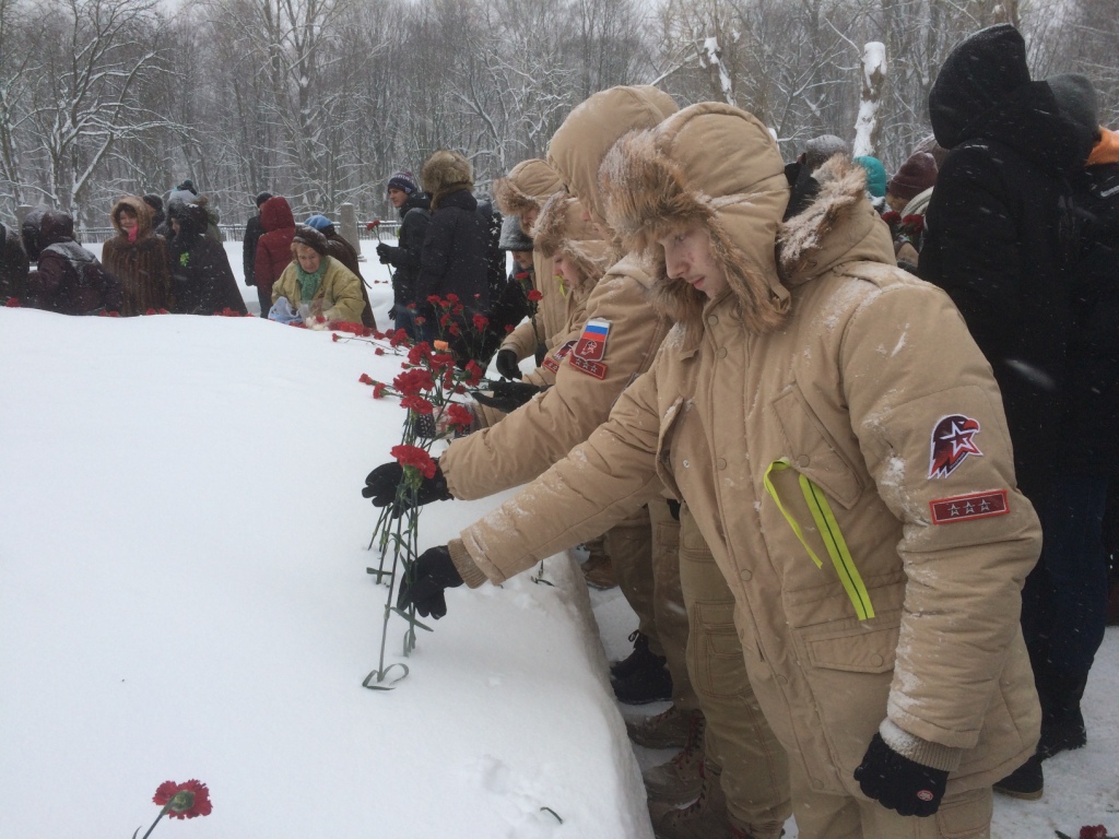 Накануне юбилейной даты, 26 января, несмотря на морозную погоду, на Смоленское мемориальное кладбище почтить память и отдать долг героизму ленинградцев пришли сотни василеостровцев: ветераны, дети блокадного Ленинграда, представители администрации района, общественных организаций, курсанты, школьники и студенты. Среди них были и обучающиеся школы № 15.