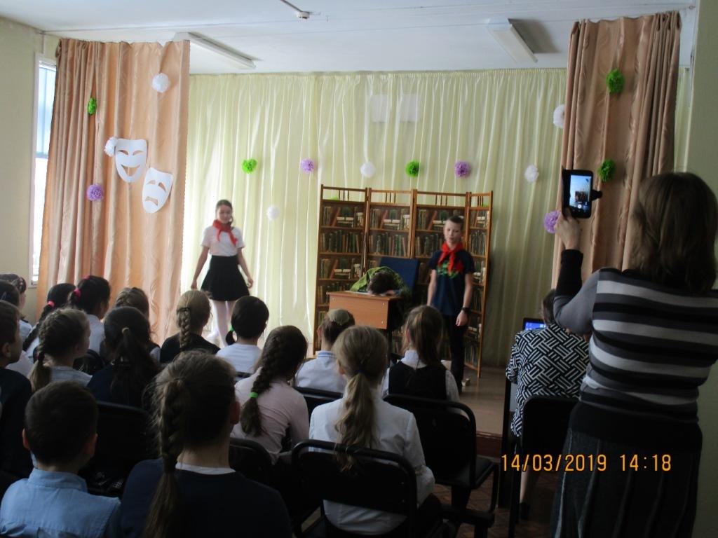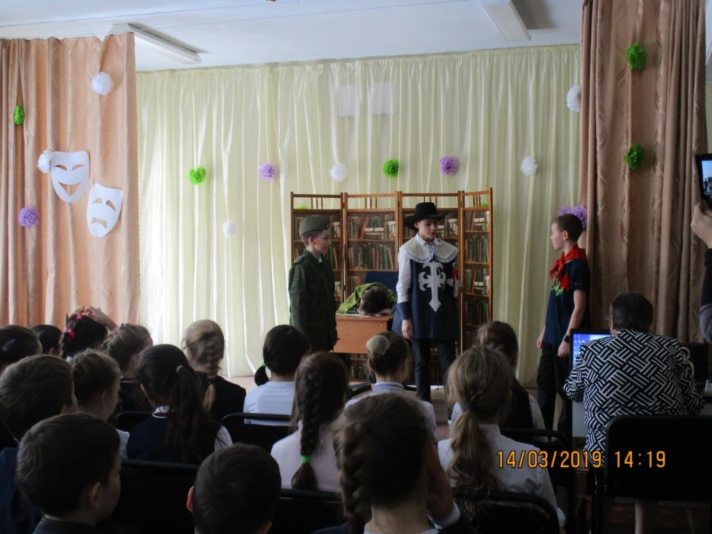 Спектакль для обучающихся 3-х и 4-х классов по пьесе И.Туричина «Удивительный суд» в четверг, 14 марта, наконец, состоялся! В течение длительного времени его приходилось откладывать по разным, но очень уважительным причинам. Над представлением витали какие-то волшебные силы. Несмотря на то, что содержание пьесы было отчасти серьёзным воспитательно-познавательным, волшебство присутствовало и в нём: «оживали» книжные герои разных стран и эпох, разговаривали между собой и …. перевоспитывали нерадивого главного героя.