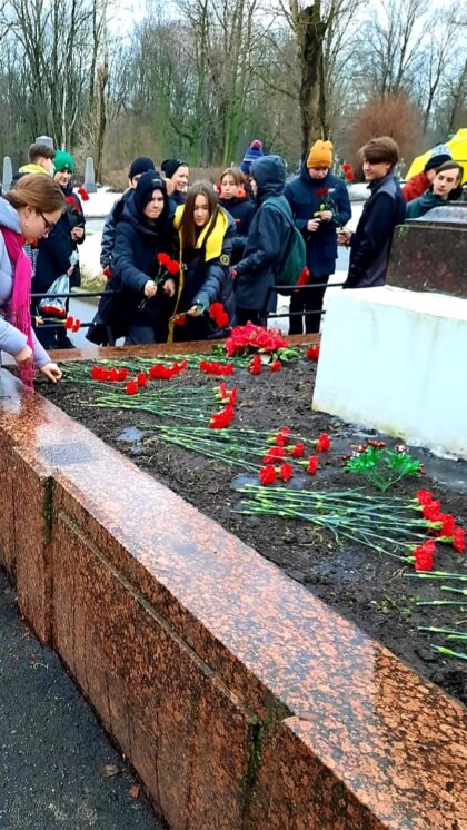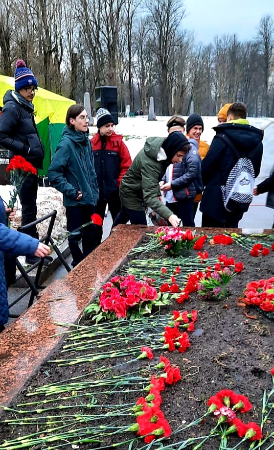 27 января Санкт-Петербург празднует 77 годовщину полного освобождения Ленинграда от фашистской блокады. Ученики 8 класса ГБОУ школы №15 не могли остаться равнодушными к этой значимой дате и тоже отдали свою дань подвигу и памяти погибших в это тяжёлое время жителей блокадного Ленинграда. В сопровождении своих старших товарищей — юнармейцев ребята возложили цветы на братской могиле на Смоленском кладбище.