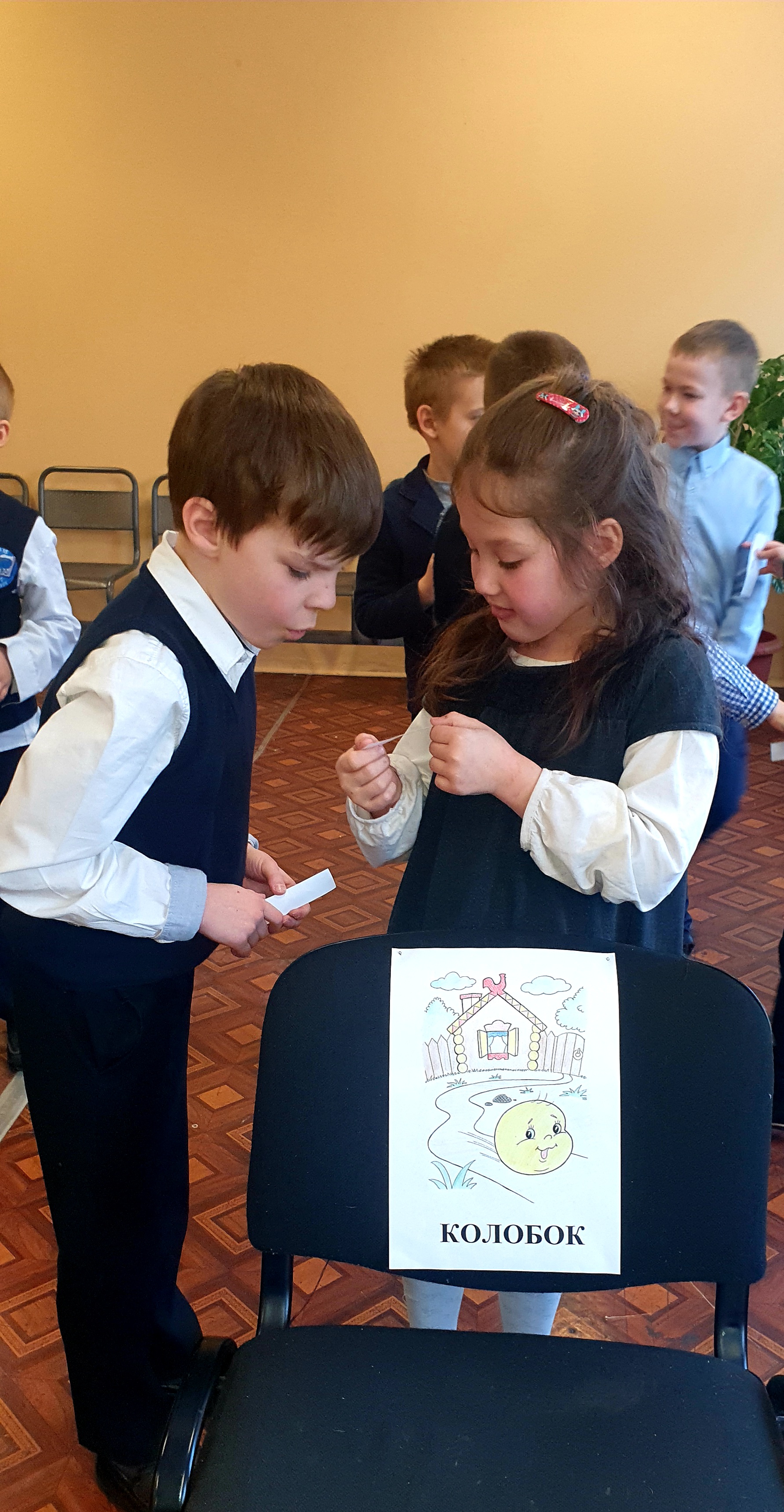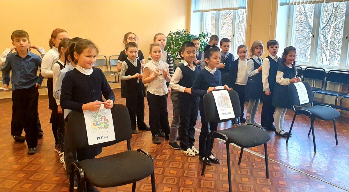 Начались каникулы у первоклассников. Накануне этого приятного события для них проводилась командная игра «Собери сказку». Сначала вспомнили героев и краткое содержание знакомых с раннего возраста русских народных сказок «Репка», «Теремок» и «Колобок».