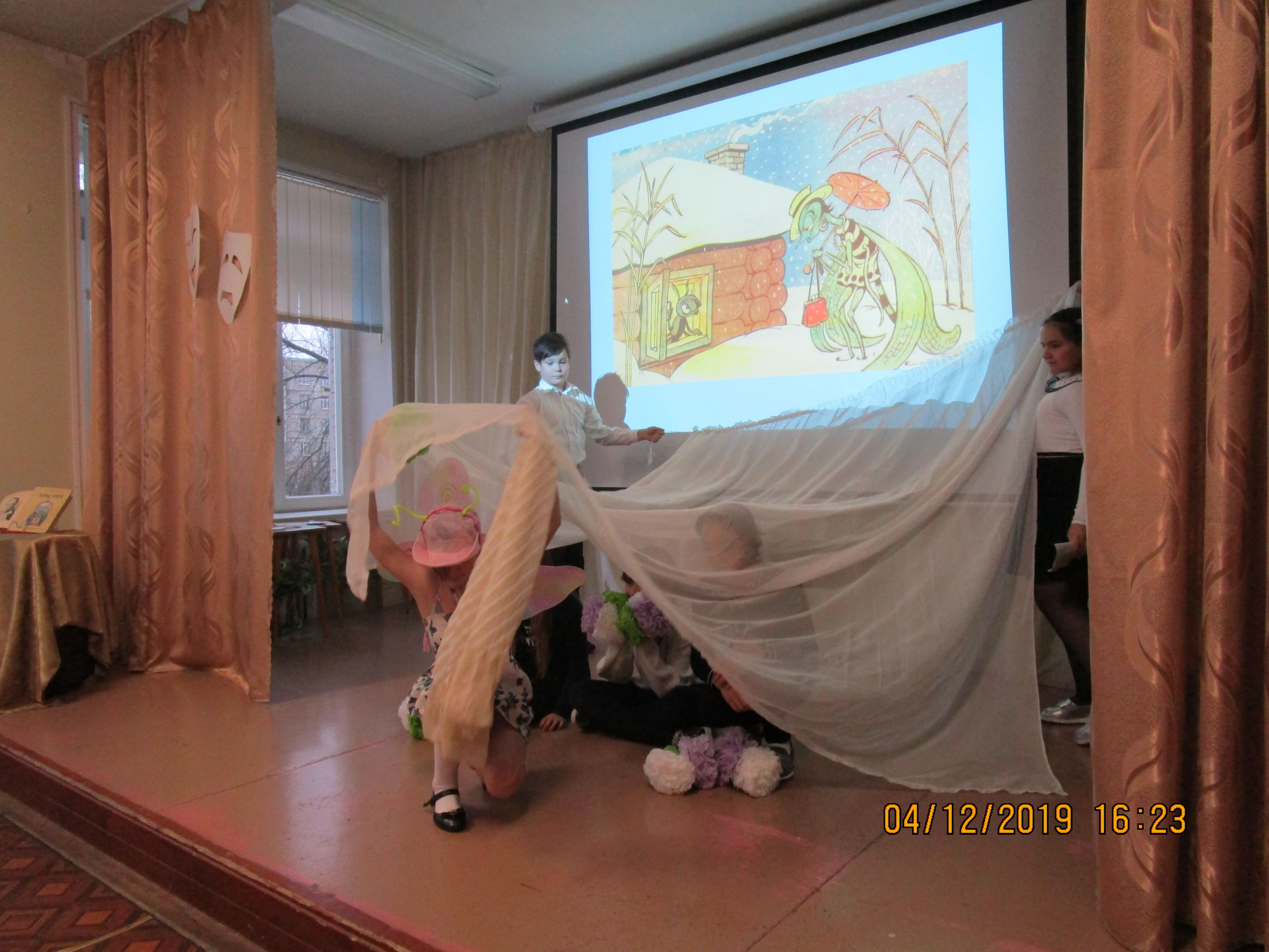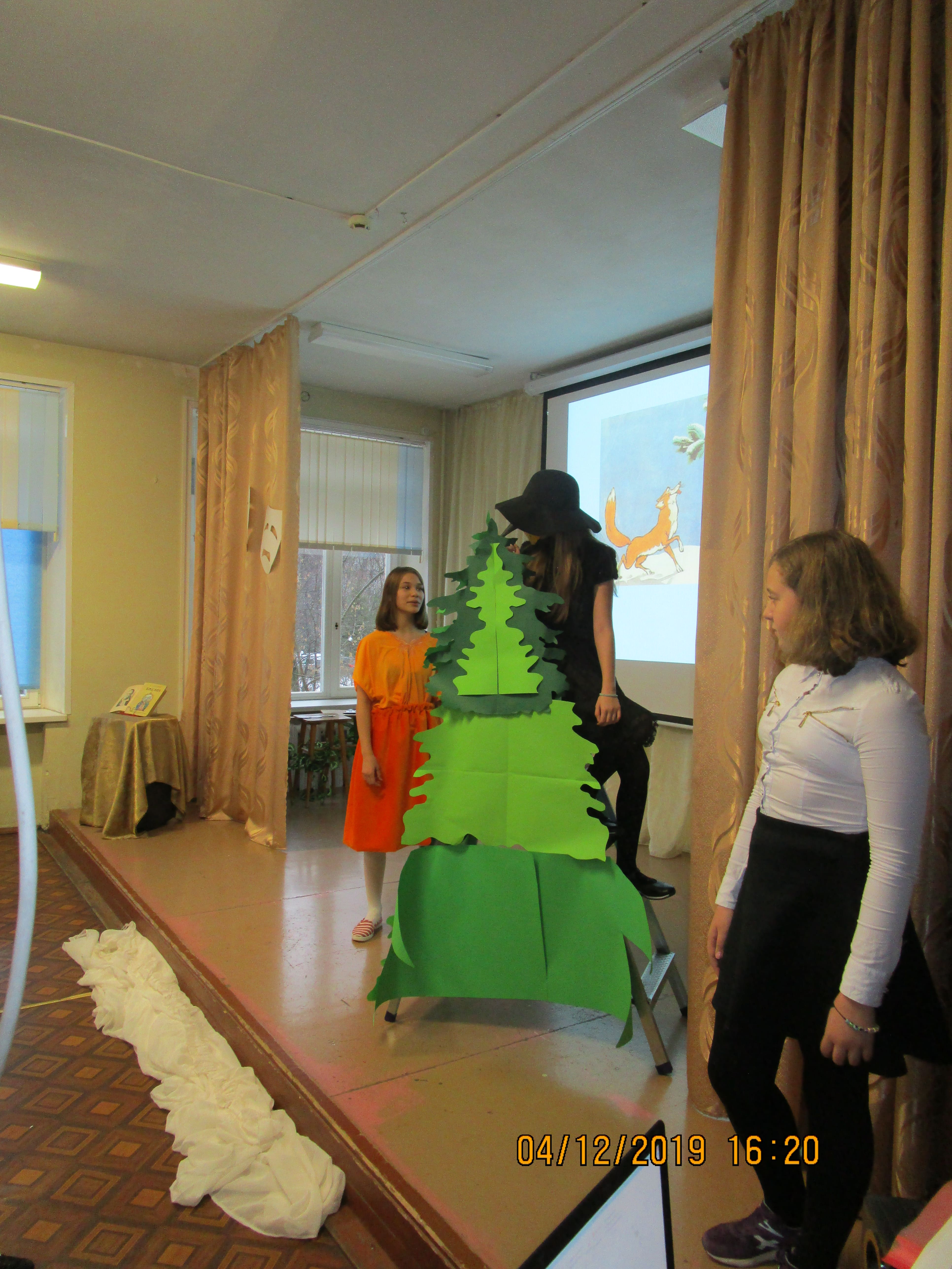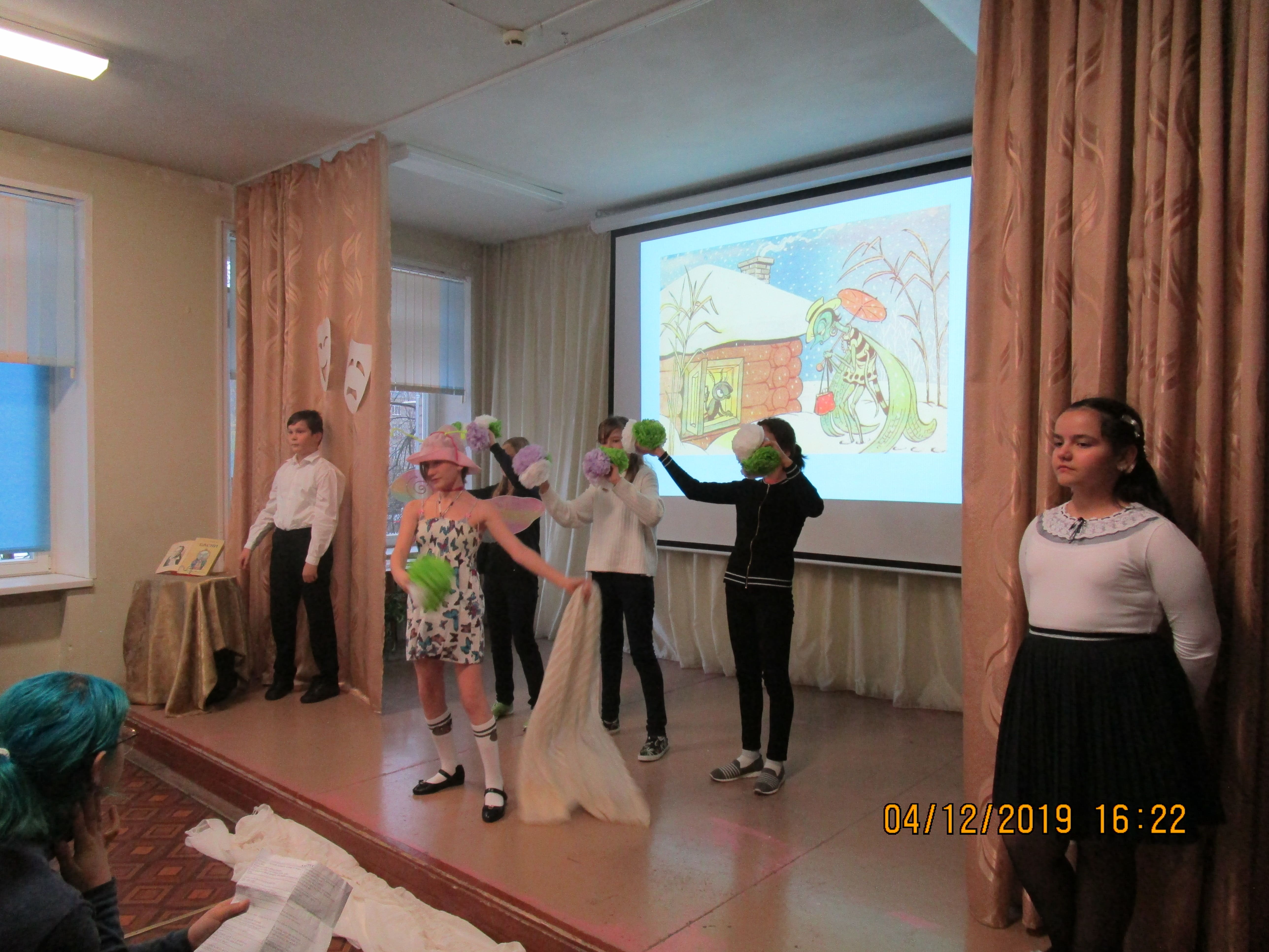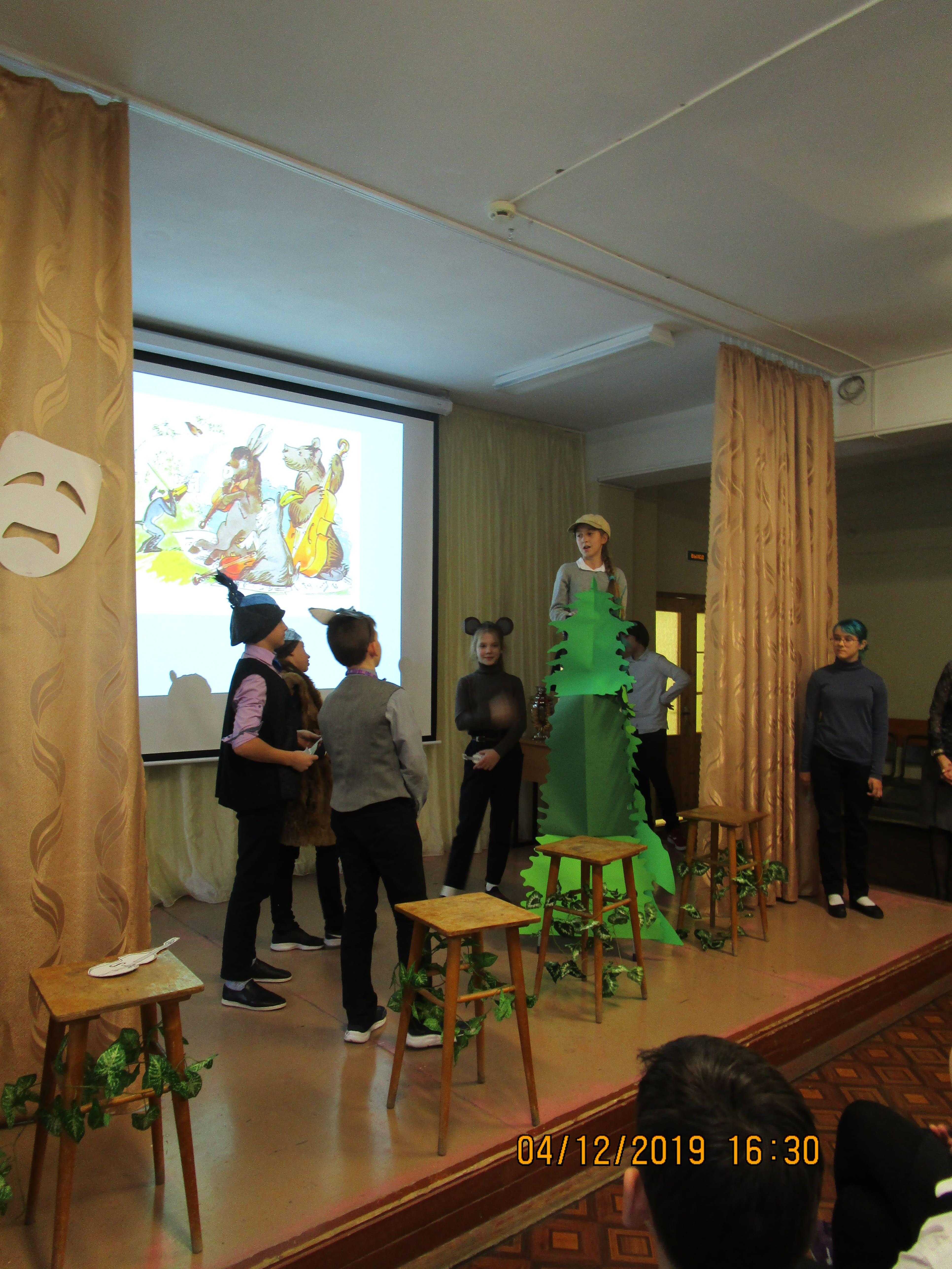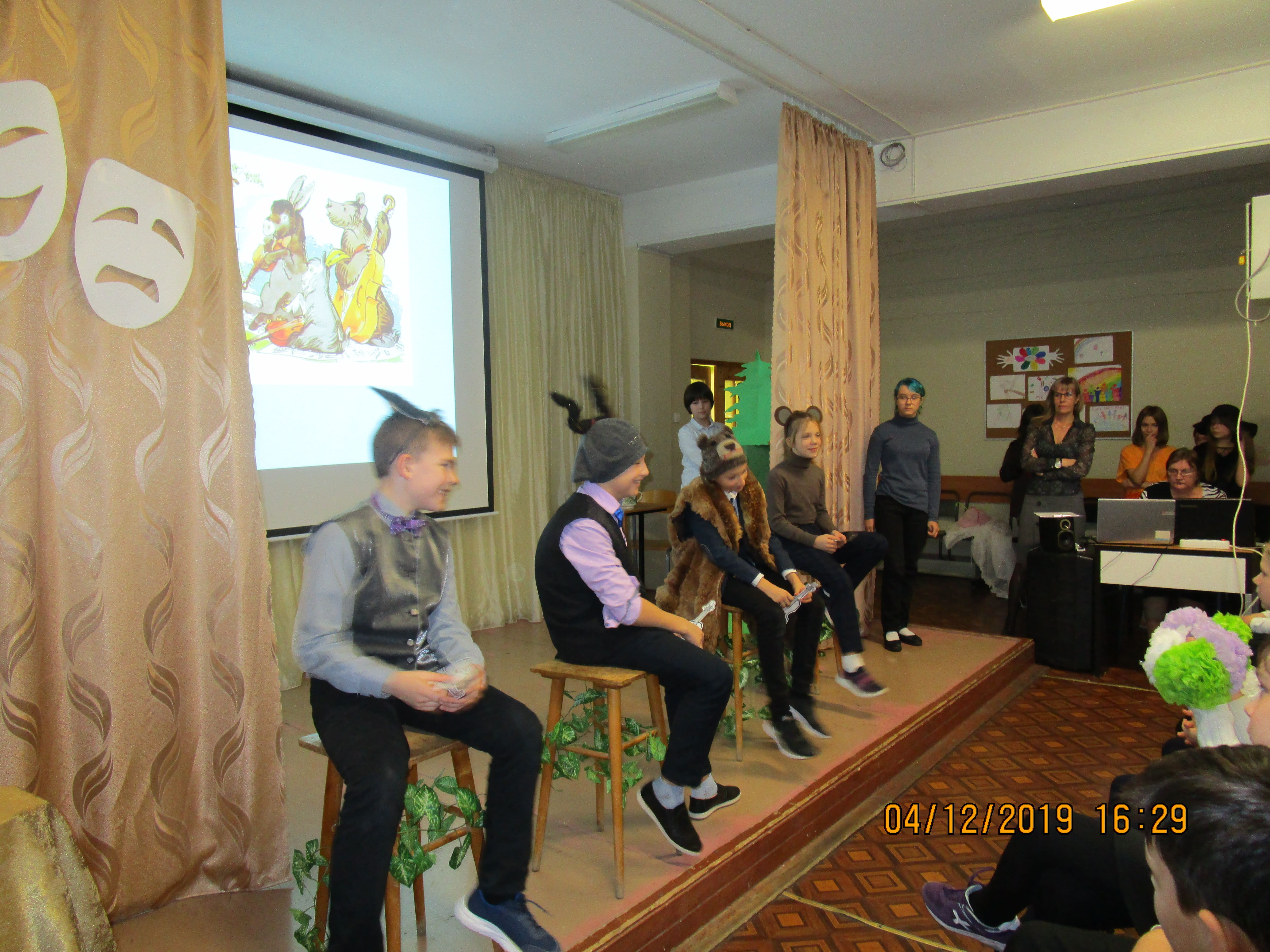Зрителями были те обучающиеся 5-х классов, кто не был занят в спектакле, и полностью 6А класс. Спектакль будет повторно сыгран для обучающихся 4-х классов через неделю.
