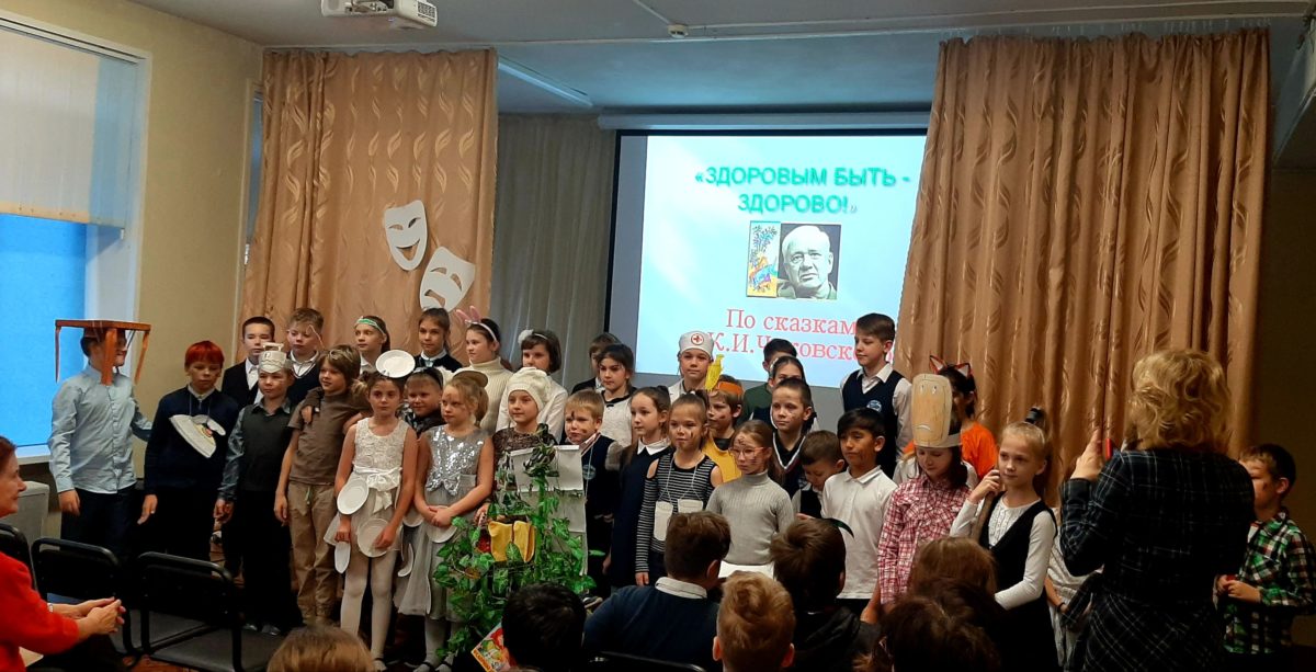 Несколько представлений состоялось в течение 2019 года – года Театра в России – в школе № 15 Василеостровского района. Одним из завершающих стал спектакль по произведениям К.И.Чуковского «Здоровым быть – здорово!»