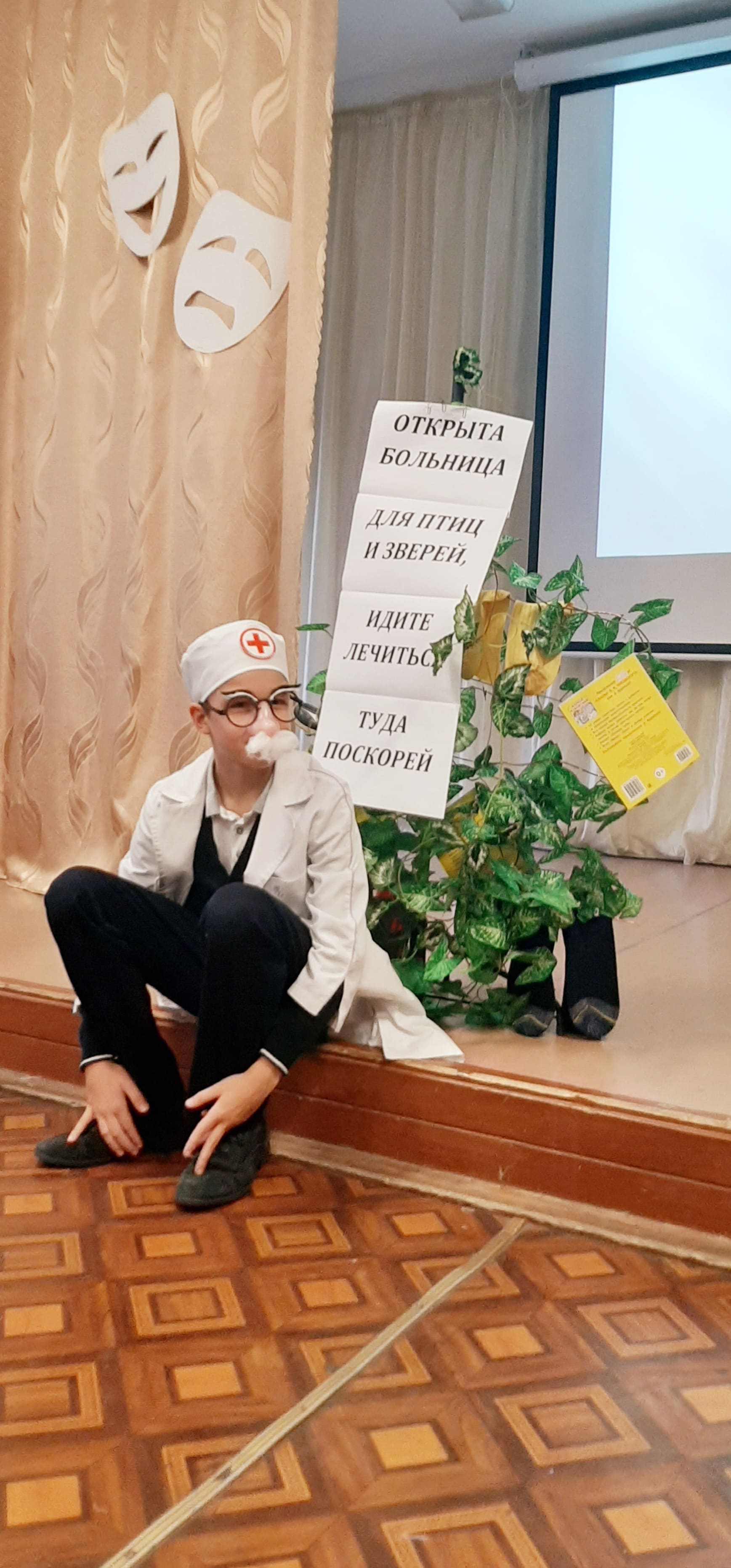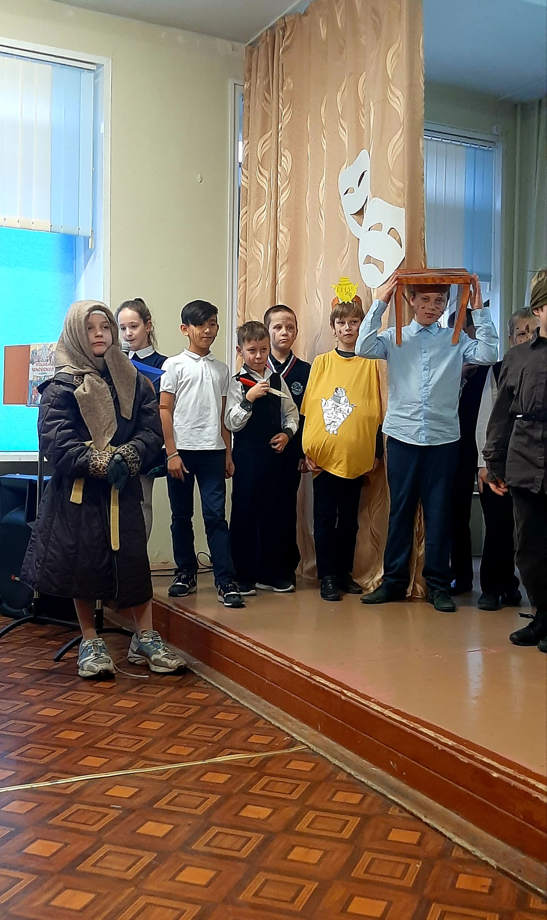 Зрители были самые благодарные: обучающиеся первых и вторых классов. Они очень искренне реагировали на всё, активно аплодировали и поддерживали героев. Выступление сопровождалось музыкальными отрывками и было совмещено с презентацией.