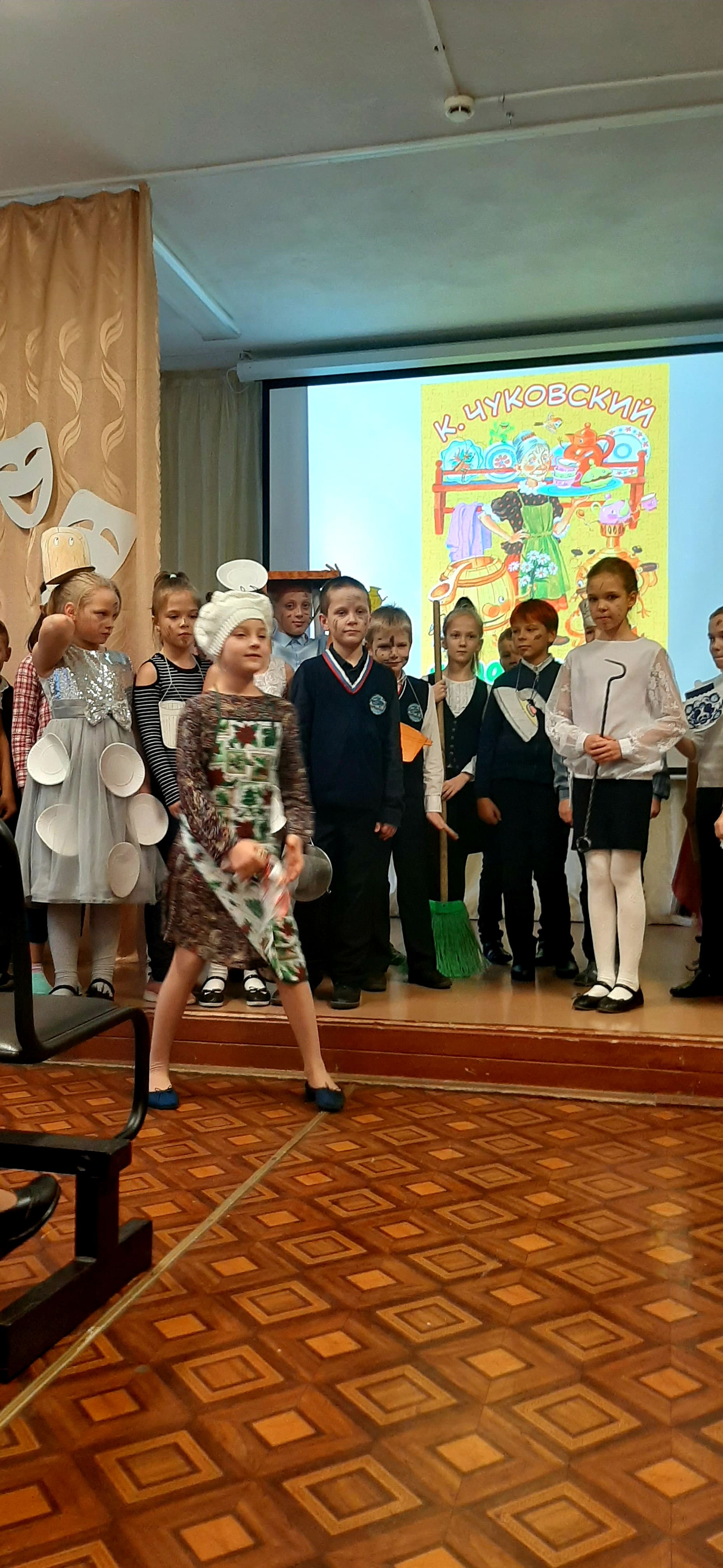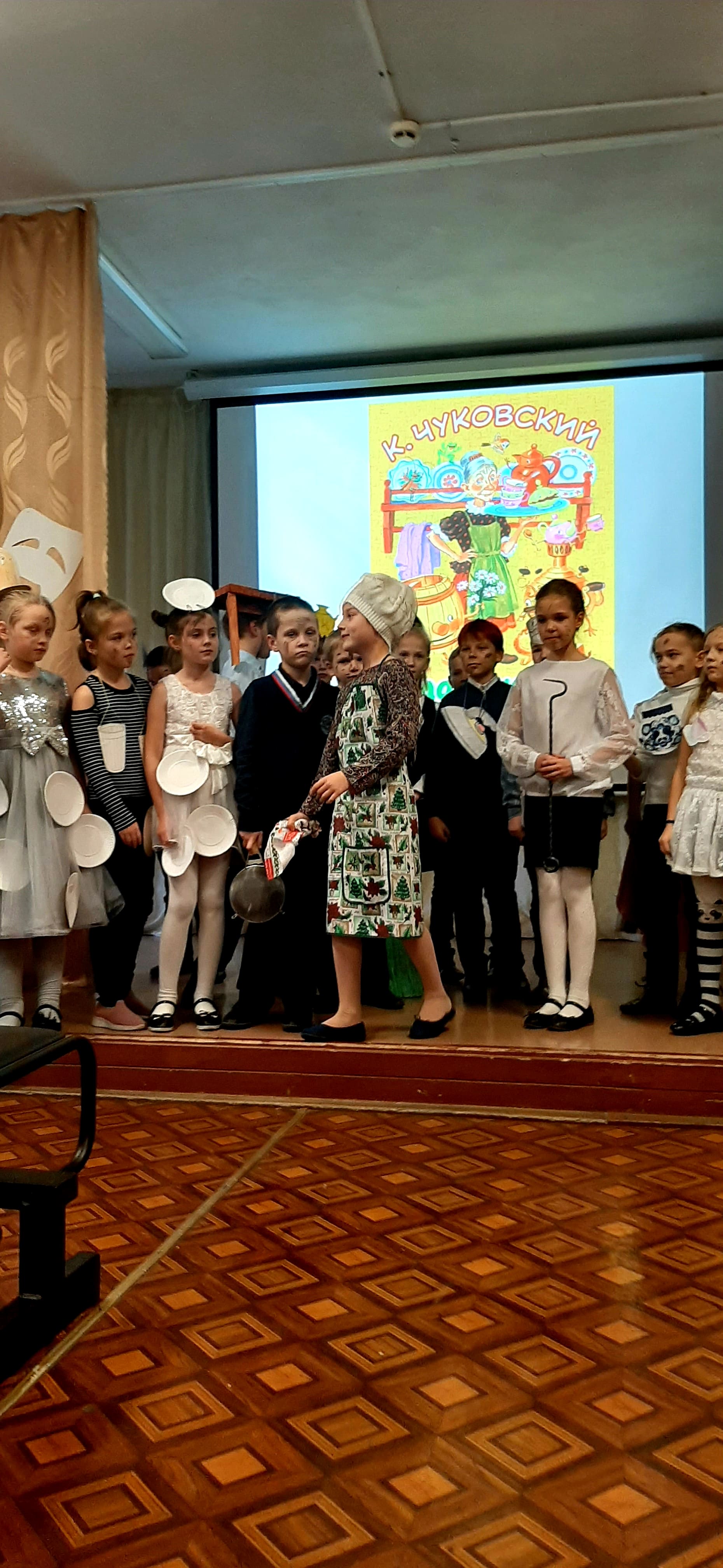 В сказке «Федорино горе» был задействован целиком 3Б класс. Нелегко быть одновременно на сцене двадцати пяти героям, чтобы их увидели и запомнили, но детям это удалось. Особенно яркими были Стол и Самовар, Блюдца и сама Федора.