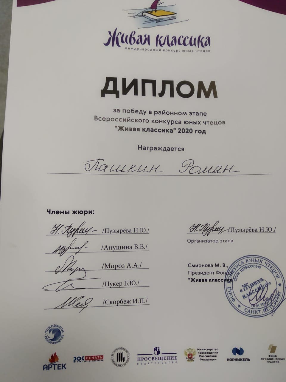 Среди выступающих были и обучающиеся ГБОУ школы № 15 Василеостровского района из 5-8 классов.Среди победителей этого конкурса членами жюри было особо отмечено выступление Пашкина Романа, ученика 5 А класса, великолепно исполнившего рассказ И. Пивоваровой «О чём думает моя голова».